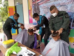 สำหรับการลงพื้นที่ในครั้งนี้ มีการดำเนินการกิจกรรมต่างๆ ประกอบด้วย การให้บริการตัดผมเคลื่อนที่ให้กับเด็กนักเรียน ตามโครงการเกศาสานใจ