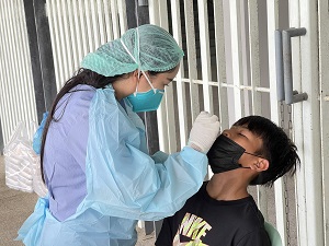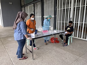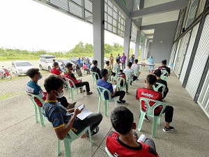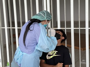 วันนี้ (9 กรกฎาคม 2565) ที่ สนามกีฬากลางจังหวัดนราธิวาส อำเภอเมือง จังหวัดนราธิวาส สมาคมกีฬาแห่งจังหวัดนราธิวาส นำโดย นายวิเชษฐ์ ไทยทองนุ่ม นายกสมาคมกีฬาแห่งจังหวัดนราธิวาส นำเยาวชนจากทั้ง 13 อำเภอในพื้นที่จังหวัดนราธิวาส ทั้ง 13 คน ที่ได้รับคัดเลือกเข้าร่วมชมการแข่งขันฟุตบอลศึกแดงเดือดในประเทศไทยระหว่างทีมลิเวอร์พูลกับทีมแมนเชสเตอร์ยูไนเต็ด เข้ารับการตรวจ ATK เพื่อเตรียมความพร้อมก่อนเดินทางไปยังกรุงเทพมหานคร เข้าร่วมชมฟุตบอลศึกแดงเดือดในประเทศไทยระหว่างทีมลิเวอร์พูลกับทีมแมนเชสเตอร์ยูไนเต็ด ในระหว่างวันที่ 11 – 14 กรกฎาคม 2565 เป็นโครงการที่เปิดโอกาสและมอบความสุขประสบการณ์ให้กับเด็กและเยาวชนในพื้นที่สามจังหวัดชายแดนภาคใต้ได้มีโอกาสเข้าชมการแข่งขันฟุตบอลทีมสโมสรระดับโลก ณ สนามราชมังคลากีฬาสถาน กรุงเทพมหานคร สร้างโอกาสให้เด็กและเยาวชนได้เห็นและเรียนรู้รูปแบบการแข่งขันรวมทั้งการวางแผนโปรแกรมการฝึกซ้อมของแต่ละทีม เพื่อเป็นแรงบัลดาลใจเกี่ยวกับกีฬาฟุตบอลและกีฬาอื่นๆ ให้เยาวชนสามารถนำไปต่อยอดด้านการกีฬาต่อไป โดย มีกำหนดเดินทางโดยเครื่องบินลำเลียงทหารอากาศ C-130 ในวันที่ 11 กรกฎาคม 2565 ณ สนามบินบ่อทองอำเภอหนองจิก จังหวัดปัตตานี