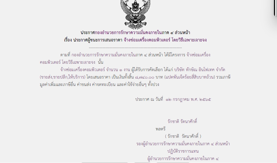 จัดซื้อ จัดจ้างประกาศผู้ชนะการเสนอราคา ประกาศผู้ชนะการเสนอราคา จ้างซ่อมเครื่องคอมพิวเตอร์ โดยวิธีเฉพาะเจาะจง July 16, 2022 574 Share Facebook Twitter Google+ Telegram LINE