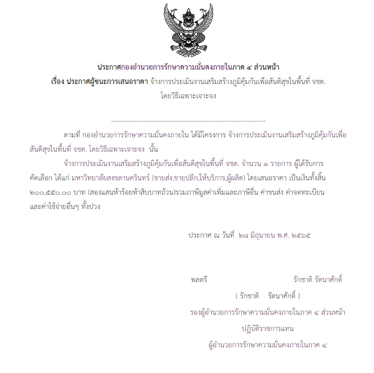 จัดซื้อ จัดจ้างประกาศผู้ชนะการเสนอราคา ประกาศผู้ชนะการเสนอราคา จ้างการประเมินงานเสริมสร้างภูมิคุ้มกันเพื่อสันติสุขในพื้นที่ จชต. โดยวิธีเฉพาะเจาะจง July 16, 2022 427 Share Facebook Twitter Google+ Telegram LINE