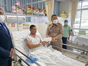 วันนี้ (16 กรกฏาคม 2565) เวลา 15.30 น. ที่ โรงพยาบาลสงขลานครินทร์ อำเภอหาดใหญ่ จังหวัดสงขลา พลเอก ประยุทธ์ จันทร์โอชา มอบ นายเจษฎา จิตรัตน์ ผู้ว่าราชการจังหวัดสงขลา เป็นผู้แทนมอบกระเช้าเยี่ยมและเงินช่วยเหลือแก่ พลโท เกรียงไกร ศรีรักษ์ แม่ทัพภาคที่ 4 / ผู้อำนวยการรักษาความมั่นคงภายในภาค 4 และเจ้าหน้าที่ทหารอีก 6 นาย ประกอบด้วย พ.ต. ประสาร ด้วงชาญ, ร.ท. ณัช โลหากาศ, ร.อ.วิสารท์ ชูสังกิจ, จ.ส.อ.พิษณุ พันเต, จ.ส.อ.ธีรพงษ์ คูหาแก้ว และ ส.อ.พีรวิทย์ โอสถเจริญ ที่ได้รับบาดเจ็บจากเหตุเฮลิคอปเตอร์ ลงจอดฉุกเฉิน ณ บ้านคลองยอ ตำบลวังใหญ่ อำเภอเทพา จังหวัดสงขลา เมื่อวันที่ 15 กรกฏาคม 2565 ที่ผ่านมา