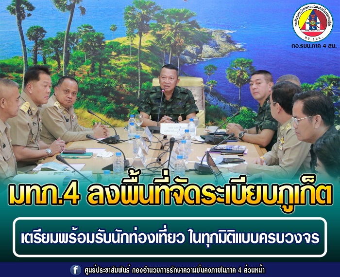 โดยแม่ทัพภาคที่ 4 กล่าวว่า “วันนี้ต้องการกระตุ้นให้ทุกส่วนเร่งดำเนินการเพื่อจัดระเบียบจังหวัดภูเก็ต ในการรองรับนักท่องเที่ยว ทั้งชาวไทยและต่างประเทศหลังปลดล็อค ลดการเอาเปรียบนักท่องเที่ยวจากผู้ประกอบการ ด้วยการบริการที่มีมาตรฐาน การจัดระเบียบต้องครบทุกมิติในทุกด้าน ในนามกองอำนวยการรักษาความมั่นคงภายในภาค 4 โดยมีผู้ว่าราชการจังหวัด เป็นผู้อำนวยการรักษาความมั่นคงภายในจังหวัด หน่วยงานที่เกี่ยวข้องต้องร่วมมือ ขับเคลื่อนนโยบาย และหนุนเสริม การจัดระเบียบต่างๆ ที่เคยทำมาและเกิดประโยชน์กับจังหวัดภูเก็ตให้เดินหน้าต่อไป และเมื่อทางจังหวัดภูเก็ตและหน่วยงานต่าง ๆ พร้อม ก็จะสามารถรับนักท่องเที่ยวต่างประเทศมาเที่ยวจังหวัดภูเก็ตได้ โดยที่ประชาชนในพื้นที่เข้าใจและเกิดความมั่นใจ”