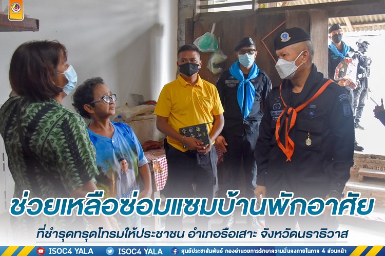 เมื่อวันที่ 16 กรกฎาคม 2565 เวลา 09.00 น. ที่ ตำบลรือเสาะ อำเภอรือเสาะ จังหวัดนราธิวาส พันเอกสิทธิชัย บำรุงเขต ผู้บังคับหน่วยเฉพาะกิจกรมทหารพรานที่ 46 พร้อมชุดเสริมสร้างความเข้าใจ กองร้อยทหารพรานที่ 4611 เข้าสำรวจบ้านของ นางน้อย ศุภเวช บ้านเลขที่ 67 หมู่ที่ 2 ตำบลรือเสาะ อำเภอรือเสาะ จังหวัดนราธิวาส ซึ่งเป็นผู้พิการทางการได้ยิน มีฐานะยากจน และบ้านที่พักอาศัยชำรุดทรุดโทรมไม่สามารถหลับนอนได้ในฤดูฝน ทางผู้บังคับหน่วยเฉพาะกิจกรมทหารพรานที่ 46 จึงสั่งการให้ชุดช่างของหน่วยเข้าดำเนินการช่วยเหลือซ่อมแซมเป็นการเร่งด่วน พร้อมมอบถุงยังชีพ เพื่อบรรเทาความเดือดร้อนในเบื้องต้น