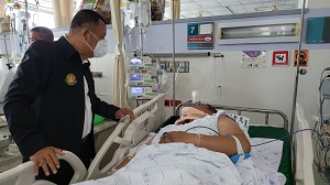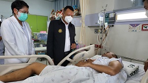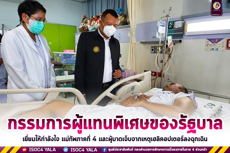 ทั้งนี้ พลเอก พรศักดิ์ พูลสวัสดิ์ กรรมการผู้แทนพิเศษของรัฐบาล ด้านความมั่นคง ได้ลงนามในสมุดเยี่ยม และมอบแจกันดอกไม้เยี่ยมของ พลเอก ประยุทธ์ จันทร์โอชา นายกรัฐมนตรี และกระเช้าเยี่ยม พลเอก ชัยชาญ ช้างมงคล หัวหน้าคณะผู้แทนพิเศษรัฐบาล ให้กับ คุณคนึงนิตย์ ศรีรักษ์ ภริยา/ประธานสมาคมแม่บ้านทหารบก สาขากองทัพภาคที่ 4 ก่อนจะไปเยี่ยมให้กำลังใจพร้อมมอบแจกันดอกไม้และกระเช้าเยี่ยมให้แก่เจ้าหน้าที่ที่ได้รับบาดเจ็บทั้ง 6 นาย โดย พลเอก พรศักดิ์ พูลสวัสดิ์ ได้นำความห่วงใยของนายกรัฐมนตรี ตลอดจนรัฐมนตรีช่วยว่าการกระทรวงกลาโหม มากล่าวกับเจ้าหน้าที่ที่ได้รับบาดเจ็บ พร้อมสอบถามอาการ และพูดคุยให้กำลังใจกับครอบครัวผู้ได้รับบาดเจ็บ ซึ่งกำลังพลทุกนาย ขณะนี้มีขวัญกำลังใจดี และ อาการโดยรวมปลอดภัย อยู่ในการดูแลของคณะแพทย์อย่างใกล้ชิด