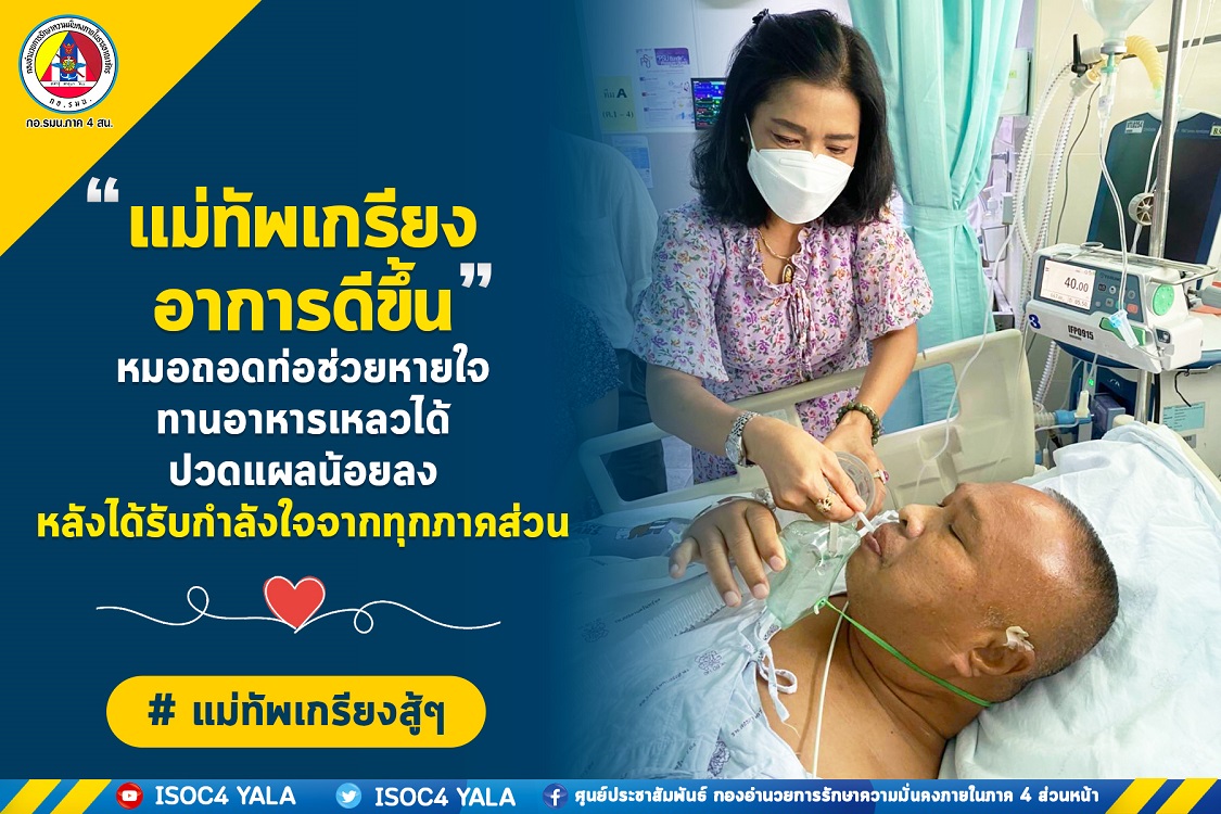 ประชาสัมพันธ์ข่าวประชาสัมพันธ์ “แม่ทัพเกรียง อาการดีขึ้น” July 18, 2022 562 Share Facebook Twitter Google+ Telegram LINE หมอถอดท่อช่วยหายใจ ทานอาหารเหลวได้ ปวดแผลน้อยลง หลังได้รับกำลังใจจากทุกภาคส่วน แม่ทัพเกรียงสู้ๆ ศูนย์ประชาสัมพันธ์กองอำนวยการรักษาความมั่นคงภายในภาค4ส่วนหน้า