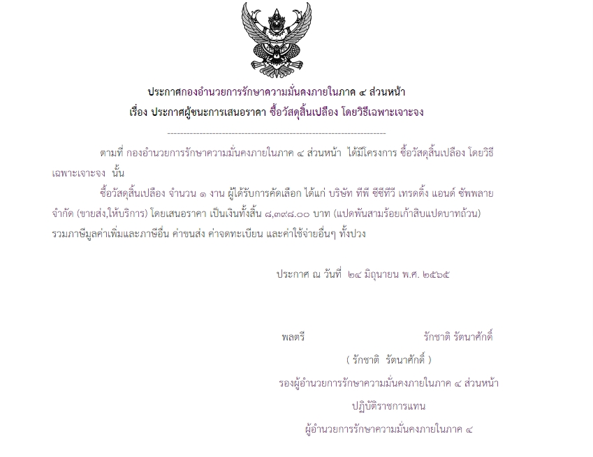 จัดซื้อ จัดจ้างประกาศผู้ชนะการเสนอราคา ประกาศผู้ชนะการเสนอราคา ซื้อวัสดุสิ้นเปลือง โดยวิธีเฉพาะเจาะจง July 20, 2022 529 Share Facebook Twitter Google+ Telegram LINE