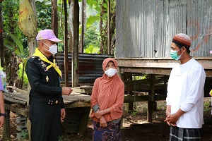 สำหรับการมอบถุงยังชีพให้กับประชาชนกลุ่มเปราะบาง ผู้พิการทางร่างกาย และผู้ยากจน ซึ่งเป็นผู้ยากไร้ที่อาศัย จำนวน 6 หลังคาเรือน ประกอบด้วย นางแมะมะ ตาเละ, นางอูโดะ แวกาจิ, นายสมพร บุญฤทธิ์, นางต้อย ประเสริฐ, นายสมปอง ทองโม และนางสาวสากีเราะห์ กือมอ ทั้งนี้ รองแม่ทัพภาคที่ 4 / หัวหน้าจิตอาสา 904 ภาค 4 ได้พูดคุยสอบถามความเป็นอยู่และความต้องการเพื่อให้การช่วยเหลือในลำดับต่อไป โดยเฉพาะด้านที่อยู่อาศัย การประกอบอาชีพ พร้อมสร้างขวัญและกำลังใจให้สามารถดำเนินชีวิตต่อไป