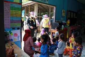 โอกาสนี้ รองแม่ทัพภาค 4 และคณะจิตอาสา 904 ได้แจกขนมให้เด็กๆ ศูนย์พัฒนาเด็กเล็กบ้านบ่อหิน ตำบลบ้านแหร อำเภอธารโต จังหวัดยะลา ซึ่งมีจำนวน 26 คน โดยได้พูดคุยให้กำลังใจคุณครูเพื่อให้สามารถสอนให้เด็กๆ เป็นแบบอย่างที่ดีในอนาคต
