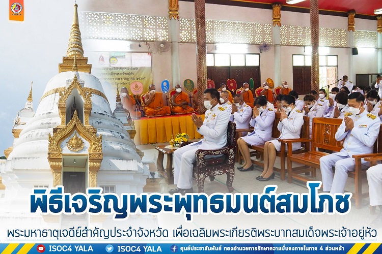 โดยสำนักงานวัฒนธรรมจังหวัดปัตตานีร่วมกับวัดหลักเมือง กำหนดจัดพิธีเจริญพระพุทธมนต์สมโภชพระมหาธาตุเจดีย์สำคัญประจำจังหวัดขึ้น เพื่อเฉลิมพระเกียรติพระบาทสมเด็จพระเจ้าอยู่หัว เนื่องในโอกาสวันเฉลิมพระชนมพรรษา 28 กรกฎาคม 2565 เป็นการแสดงออกถึงความจงรักภักดี การเทิดทูนสถาบันชาติ ศาสนา และพระมหากษัตริย์ รวมถึงเป็นการสร้างขวัญและกำลังใจของพุทธศาสนิกชนในพื้นที่ ส่งเสริมให้พุทธศาสนิกชนได้เข้าร่วมกิจกรรมทางศาสนา น้อมนำหลักธรรม มาปรับใช้ในการดำเนินชีวิตประจำวัน และสืบทอดประเพณีพิธีการเจริญพระพุทธมนต์และสมโภชพระเจดีย์ที่มีมาตั้งแต่สมัยโบราณกาล อันเป็นการสืบทอดพิธีกรรมทางพระพุทธศาสนาให้มั่นคงสืบไป
