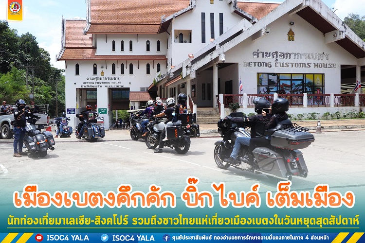วันนี้ (23 กรกฏาคม 2565) ที่บริเวณด่านพรมแดนเบตง บ้านกาแป๊ะฮูลู ตำบลเบตง อำเภอเบตง จังหวัดยะลา ซึ่งอยู่ตรงข้ามกับด่านบูกิตบือราปิต กิ่งอำเภอเปิงกาลันฮูลู รัฐเปรัค ประเทศมาเลเซีย มีนักท่องเที่ยวชาวมาเลเซีย สิงคโปร์ และ นักท่องเที่ยวชาวไทย พาครอบครัว เดินทางเข้ามาท่องเที่ยวในอำเภอเบตง จังหวัดยะลากันอย่างคึกคัก ในช่วงวันหยุดสุดสัปดาห์ ทั้งที่มาเป็นกรุ๊ปทัวร์ ด้วยรถบัส บ้างก็พาครอบครัวมากับรถยนต์ส่วนตัว รถตู้โดยสาร แล้วแต่ความสะดวกของแต่ละคน และในวันนี้ก็ยังมีกลุ่มรถบิ๊กไบค์ รวมตัวกันกว่าร้อยคัน เดินทางมาจากประเทศมาเลเซีย สิงค์โปร์ ผ่านด่านพรมแดนเบตง เพื่อเข้ามาท่องเที่ยวตามสถานที่ท่องเที่ยวในอำเภอเบตง ประกอบกับในพื้นที่อำเภอเบตงมีนักท่องเที่ยวชาวไทยจากจังหวัดต่างๆทั่วประเทศเดินทางมาท่องเที่ยวเป็นประจำอยู่แล้ว จึงทำให้บรรยากาศการท่องเที่ยวในพื้นที่อำเภอเบตงคึกคักมากเป็นพิเศษ ตามท้องถนนรถรา ผู้คนเดินท่องเที่ยวเต็มไปหมด ย่านเศรษฐกิจการค้า ใจกลางเมืองแทบหาที่จอดรถไม่ได้ แม้แต่ที่จอดรถจักรยานยนต์ยังหายาก ตามร้านอาหาร แหล่งท่องเที่ยว ก็เต็มไปด้วยบรรดานักท่องเที่ยว
