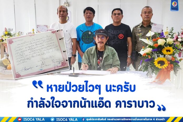นอกจากจะเดินสายเล่นคอนเสิร์ตทางภาคใต้แล้ว ยังมีเวลามาเยี่ยมให้กำลังใจนายหัวเกรียง แม่ทัพภาคที่ 4 ที่ถือเป็นเพื่อนสนิทของน้าแอ๊ด คาราบาว อีกท่านหนึ่ง แม้วันนี้จะไม่ได้เข้าเยี่ยมแต่ฝากคลิปส่งกำลังใจพร้อม VDO Call ถึงแม่ทัพ “หายป่วยไวๆ นะครับ” ทั้งนี้ยังแสดงความห่วงใยไปยังน้องๆ บนเครื่องทั้ง 6 นายที่ได้รับออุบัติเหตุครั้งนี้อีกด้วย