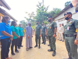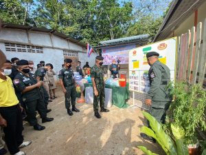 จากนั้น ได้เดินทางต่อไปยัง ชุดคุ้มครองตำบลแค อำเภอจะนะ จังหวัดสงขลา เพื่อร่วมประชุมรับฟังบรรยายสรุปการปฏิบัติของหน่วย ตามแผนสกัดกั้นเส้นทางเข้าสู่เมืองเศรษฐกิจ พร้อมพบปะกำลังพล โดยได้เน้นย้ำให้กำลังพลดูแลความสงบเรียบร้อยในพื้นที่ ประสานการปฏิบัติควบคู่กับหน่วยในพื้นที่ เป็นการป้องกันและป้องปราม ไม่ให้เกิดเหตุการณ์ความรุนแรงในพื้นที่ได้ โดยขอให้เจ้าหน้าที่ทุกนายปฏิบัติหน้าที่ด้วยความไม่ประมาท พร้อมกันนี้ได้มอบสิ่งของเพื่อสร้างขวัญกำลังใจให้กับกำลังพล ก่อนจะเดินทางไปตรวจเยี่ยมการปฏิบัติงาน ณ จุดตรวจคูนายสังข์