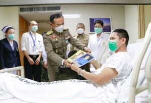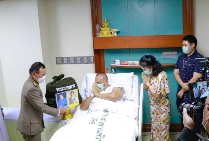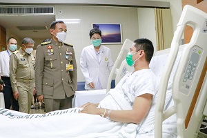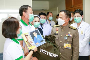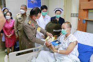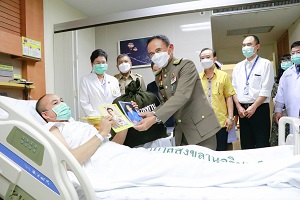 วันที่ 27 กรกฎาคม 2565 เวลา 12.50 น. ณ โรงพยาบาลสงขลานครินทร์ อำเภอหาดใหญ่ จังหวัดสงขลา พระบาทสมเด็จพระเจ้าอยู่หัว ทรงพระกรุณาโปรดเกล้าฯ ให้ พลเอก ไพบูลย์ คุ้มฉายา องคมนตรี ปฏิบัติภารกิจเยี่ยมให้กำลังใจ พร้อมเชิญสิ่งของพระราชทาน มอบแก่ พลโท เกรียงไกร ศรีรักษ์ แม่ทัพภาคที่ 4 / ผู้อำนวยการรักษาความมั่นคงภายในภาค 4 และกำลังพลที่ได้รับบาดเจ็บจากเหตุการณ์ เฮลิคอปเตอร์แบล็คฮอว์ก ลงจอดฉุกเฉินในพื้นที่ ตำบลวังใหญ่ อำเภอเทพา จังหวัดสงขลา เมื่อวันที่ 15 กรกฎาคม 2565 ตลอดจน เจ้าหน้าที่ ชุดเก็บกู้วัตถุระเบิด กองกำกับการตำรวจตระเวนชายแดนที่ 43 ซึ่งได้รับบาดเจ็บ จากเข้าตรวจสอบ เหตุราษฎรเหยียบกับระเบิดในพื้นที่ ตำบลบ้านนา อำเภอจะนะ จังหวัดสงขลา เมื่อวันที่ 3 กุมภาพันธ์ 2565 และเจ้าหน้าที่ ชุดเก็บกู้วัตถุระเบิด กองกำกับการปฏิบัติการพิเศษ ตำรวจภูธรจังหวัดปัตตานี ซึ่งได้รับบาดเจ็บจากการเข้าตรวจสอบ เหตุระเบิดในพื้นที่ตำบลแป้น อำเภอสายบุรี จังหวัดปัตตานี เมื่อวันที่ 15 เมษายน 2565 ที่ผ่านมา โดยมี พลตรี อุทิศ อนันตนานนท์ รองแม่ทัพภาคที่ 4 / รองผู้อำนวยการรักษาความมั่นคงภายในภาค 4 ส่วนหน้า ร่วมคณะติดตาม ผู้ว่าราชการจังหวัดสงขลา คณะแพทย์ พยาบาล บุคลากรทางการแพทย์ และส่วนที่เกี่ยวข้อง ร่วมให้การต้อนรับ