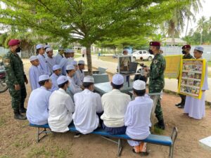 เมื่อวันที่ 27 กรกฎาคม 2565 ที่ โรงเรียนนูรูลอิสลามภูมีวิทยา บ้านภูมีปอเนาะ หมู่ที่ 4ตำบลยามู อำเภอยะหริ่ง จังหวัดปัตตานี ชุดควบคุมที่ 951 หน่วยเฉพาะกิจสันติสุข โดยชุดปฏิบัติการรบพิเศษที่ 102 ดำเนินกิจกรรมจัดบอร์ด และถ่ายทอดเรื่องราว พระราชประวัติ พระราชกรณียกิจของ พระบาทสมเด็จพระปรเมนทรรามาธิบดีศรีสินทร มหาวชิราลงกรณ พระวชิรเกล้าเจ้าอยู่หัว ร่วมกับ กลุ่มสภานักเรียนชาย เพื่อเป็นการแสดงออกถึงความจงรักภักดี และสำนึกในพระมหากรุณาธิคุณของพระบาทสมเด็จพระเจ้าอยู่หัว อันเป็นการเทิดทูนไว้ซึ่งสถาบันพระมหากษัตริย์ ซึ่งนักเรียนและครูล้วนแล้วรู้สึกสำนึกในพระมหากรุณาธิคุณที่ในหลวงทรงเห็นความสำคัญของทุกศาสนา และเห็นความสำคัญของพี่น้องชาวไทยมุสลิมโดยเฉพาะอย่างยิ่งในพื้นที่จังหวัดชายแดนภาคใต้