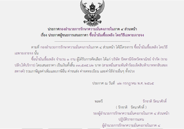 ประกาศผู้ชนะการเสนอราคา ซื้อน้ำมันเชื้อเพลิง โดยวิธีเฉพาะเจาะจง ( 33,575.62 บาท )