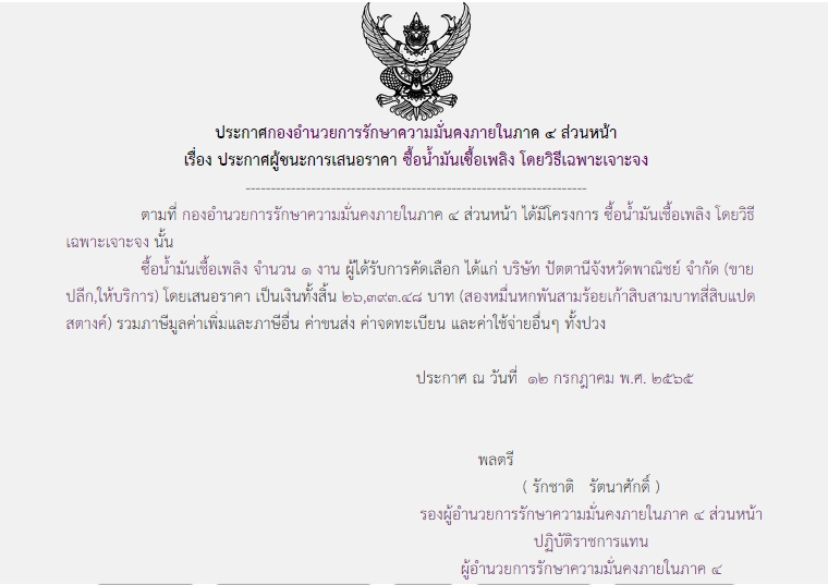 ประกาศผู้ชนะการเสนอราคา ซื้อน้ำมันเชื้อเพลิง โดยวิธีเฉพาะเจาะจง ( 26,393.48 บาท )