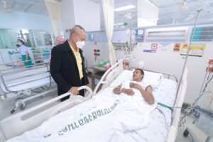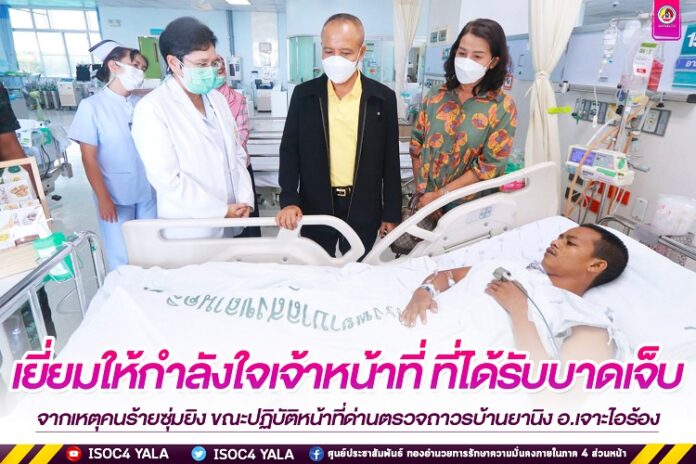 วันนี้ 31 กรกฎาคม 2565 เวลา 10.00 น. ที่ โรงพยาบาลสงขลานครินทร์ อำเภอหาดใหญ่ จังหวัดสงขลา พลตรี อุทิศ อนันตนานนท์ รองแม่ทัพภาคที่ 4/รองผู้อำนวยการรักษาความมั่นคงภายในภาค 4 ส่วนหน้า เยี่ยมให้กำลังใจ พร้อมมอบกระเช้าเยี่ยมผู้ป่วย พร้อมเงินช่วยเหลือเป็นขวัญกำลังใจอาสาสมัครทหารพราน อิสมาแอ สวานิ กำลังพล สังกัดหน่วยเฉพาะกิจกรมทหารพรานที่ 48 ซึ่งได้รับบาดเจ็บจากเหตุคนร้ายซุ่มยิง ขณะปฏิบัติหน้าที่ด่านตรวจถาวรบ้านยานิง หมู่ที่ 7 ตำบลจวบ อำเภอเจาะไอร้อง จังหวัดนราธิวาส เมื่อวันที่ 25 กรกฎาคม 2565 ที่ผ่านมา