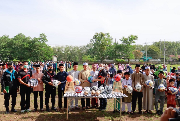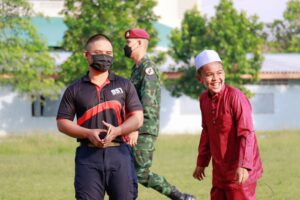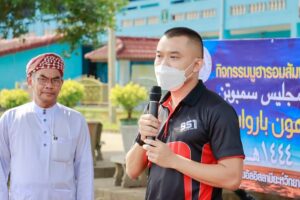วันนี้ 1 สิงหาคม 2565 ณ โรงเรียนอัลอิสลามียะห์วิทยามูลนิธิ ตำบลคลองใหม่ อำเภอยะรัง จังหวัดปัตตานี พันโท เฉลิมพล ปาปะโข ผู้บังคับชุดควบคุมที่ 951 หน่วยเฉพาะกิจสันติสุข นำเจ้าหน้าที่ ร่วมทำกิจกรรมหน้าเสาธงร่วมเคารพธงชาติพบปะและส่งมอบอุปกรณ์กีฬาให้กับนักเรียนโรงเรียนอัลอิสลามียะห์วิทยามูลนิธิ ซึ่งได้รับการสนับสนุนจากอุปกรณ์กีฬาจากชมรมสานฝันปันสุข โดยบริษัท อิตาเลี่ยนไทย ดีเวล๊อปเมนต์ และชมรมผู้ประกอบการนำเข้าส่งออกด้วยความถูกต้อง เพื่อมอบให้กับสถานศึกษาในพื้นที่จังหวัดชายแดนภาคใต้ เพื่อเสริมสร้างความสัมพันธ์ที่ดีระหว่างเจ้าหน้าที่กับนักเรียน และคณะครู ตลอดจนเพื่อสร้างความสมัครสมานความสามัคคี และกระตุ้นให้เยาวชนห่างไกลจากยาเสพติด ด้วยการส่งเสริมให้เยาวชนหันมาเล่นกีฬา โดยมีนาย มาหะหมัด ดาโอ๊ะ ผู้อำนวยการโรงเรียนอัลอิสลามียะห์วิทยามูลนิธิ คณะครู และนักเรียนร่วมรับมอบอุปกรณ์กีฬาในครั้งนี้
