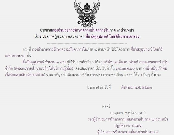 ประกาศผู้ชนะการเสนอราคา ซื้อวัสดุอุปกรณ์ โดยวิธีเฉพาะเจาะจง (19,737.00)