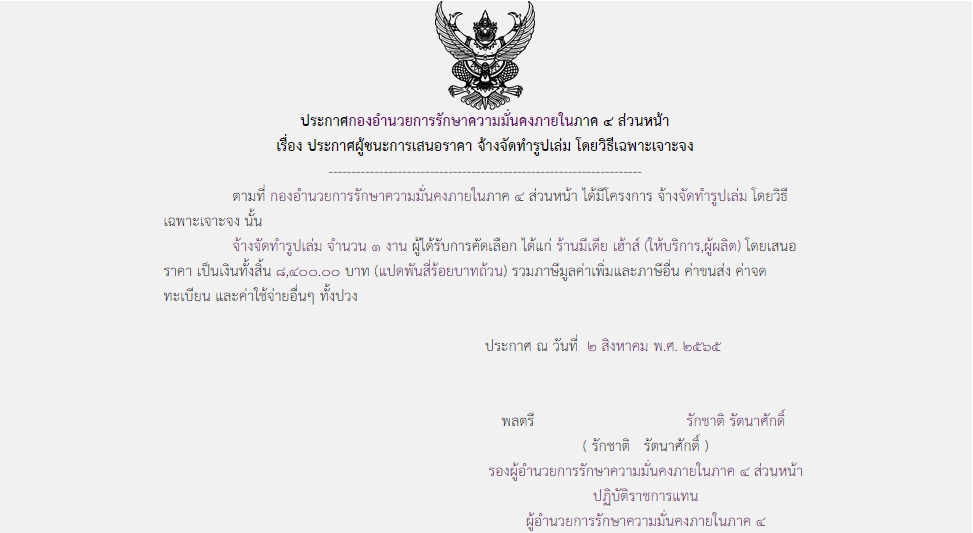 จัดซื้อ จัดจ้างประกาศผู้ชนะการเสนอราคา ประกาศผู้ชนะการเสนอราคา จ้างจัดทำรูปเล่ม โดยวิธีเฉพาะเจาะจง ( 8,400.00 บาท ) August 2, 2022 738 Share Facebook Twitter Google+ Telegram LINE