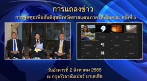 วันนี้ 2 สิงหาคม 2565 เวลา 18.00 น. พลเอก วัลลภ รักเสนาะ หัวหน้าคณะพูดคุยเพื่อสันติสุขจังหวัดชายแดนภาคใต้ พร้อมด้วย พลโท ธิรา แดหวา แม่ทัพน้อยที่ 4,พลเอกสวัสดิ์ ชนะจิตราสกุล ที่ปรึกษาสำนักนโยบายและยุทธศาสตร์ กองอำนวยการรักษาความมั่นคงภายในราชอาณาจักร, นายกฤษฎา อักษรวงศ์ รองผู้อำนวยการสำนักข่าวกรองแห่งชาติ, พลตำรวจตรี มณฑล บัวจีบ รองผู้บัญชาการตำตรวจสันติบาล, นางสาววันรพี ขาวสะอาด หัวหน้าสำนักผู้ตรวจราชการกระทรวงยุติธรรม และคณะร่วมแถลงผลการพูดคุยสันติสุขจังหวัดชายแดนภาคใต้แบบเต็มคณะ ครั้งที่ 5 กับคณะผู้แทน BRN นำโดย อุสตาส อานัส อับดุลเราะห์มานและคณะ โดยมี นายตันซรี อับดุล ราฮิม บิน โมฮัมหมัด นอร์ เป็นผู้อำนวยความสะดวกการพูดคุย และมีผู้เชี่ยวชาญร่วมสังเกตการณ์อีก 2 คน ระหว่าง วันที่ 1-2 สิงหาคม 2565 ณ สถานเอกอัครราชทูตไทย ณ กรุงกัวลาลัมเปอร์ ประเทศมาเลเซีย ซึ่งการพูดคุยครั้งนี้มีการพูดคุยหลายประเด็น โดยเฉพาะประเด็นการ การยุติความรุนแรง ช่วงเข้าพรรษาเป็นเวลา 3 เดือน ซึ่งที่ผ่านมาระหว่างคณะพูดคุยรัฐบาลไทยกับกลุ่ม BRN ได้ทำข้อตกลงยุติความรุ่นแรงในเดือนรอมฎอนที่ผ่านมา เช่นเดียวกับพี่น้องชาวไทยพุทธที่ไม่อยากให้เกิดเหตุความรุนแรงในช่วงเข้าพรรษา เพื่อยุติความรุนแรงทุกรูปแบบในพื้นที่