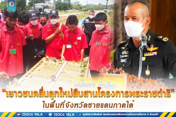 ทั้งนี้ พลตรี เฉลิมพร ขำเขียว ผู้อำนวยการศูนย์ประสานงานโครงการอันเนื่องมาจากพระราชดำริ กล่าวว่า กิจกรรมเยาวชนคลื่นลูกใหม่สืบสานโครงการพระราชดำริในพื้นที่จังหวัดชายแดนภาคใต้ เป็นกิจกรรมที่เสริมสร้าง และปลูกฝังให้เยาวชนมีจิตสำนึกรัก หวงแหน พร้อมธำรงไว้ซึ่งสถาบันชาติ ศาสนา และพระมหากษัตริย์ ให้เป็นสิ่งยึดเหนี่ยวจิตใจของคนในชาติ และมีความภาคภูมิใจในความเป็นไทย โดยจะปลูกฝังให้เยาวชนได้เรียนรู้แนวทางโครงการพระราชดำริต่างๆ โดยเฉพาะศาสตร์พระราชานั่นคือการดำเนินชีวิตตามหลักปรัชญาเศรษฐกิจพอเพียง เพื่อนำไปปรับใช้ให้เหมาะสมกับการดำเนินชีวิตที่อยู่บนพื้นฐานของการเดินทางสายกลาง และความไม่ประมาท โดยคำนึงถึงการรู้จักพึ่งพาตนเอง ความพอมี พอกิน พอประมาณ อันเป็นการสร้างภูมิคุ้มกันที่ดีให้แก่เยาวชน สามารถดำรงชีวิตในภายภาคหน้าได้อย่างยั่งยืน โดยมีวัตถุประสงค์ เพื่อสืบสาน รักษา ต่อยอด พระราชปณิธาน ของพระบาทสมเด็จพระบรมชนกาธิเบศร มหาภูมิพลอดุลยเดชมหาราช บรมนาถบพิตร และสมเด็จพระนางเจ้าสิริกิติ์ พระบรมราชินีนาถ พระบรมราชชนนีพันปีหลวง ในการส่งเสริมการดำเนินชีวิตตามหลักปรัชญาเศรษฐกิจพอเพียง ตลอดจนเพื่อเสริมสร้างจิตสำนึกให้กับเยาวชนในพื้นที่จังหวัดชายแดนภาคใต้ จนสามารถขยายผลการดำเนินชีวิต ตามหลักปรัชญาของเศรษฐกิจพอเพียง ให้เป็นไปอย่างกว้างขวาง สามารถปฏิบัติตามได้จริง และเห็นผลเป็นรูปธรรม เป็นการสร้างภูมิคุ้มกันที่ดี ให้สามารถดำรงชีวิตอย่างมีคุณภาพ และยั่งยืนต่อไป