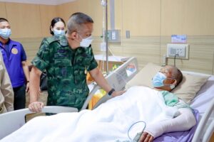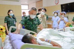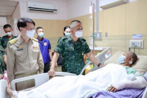 ทั้งนี้ พลตรีปราโมทย์ พรหมอินทร์ รองผู้อำนวยการรักษาความมั่นคงภายในภาค 4 ส่วนหน้า ได้พูดคุย สอบถามอาการตลอดจนกล่าวให้กำลังใจ ขอให้มีขวัญ และกำลังใจที่ดีขึ้น พร้อมกันนี้ได้มอบกระเช้าเยี่ยมให้กับเจ้าหน้าที่ ที่ได้รับบาดเจ็บ เเละเงินบำรุงขวัญในนาม พลเอก ณรงค์พันธ์ จิตต์แก้วแท้ ผู้บัญชาการทหารบก/รองผู้อำนวยการรักษาความมั่นคงภายในราชอาณาจักร และในนาม พลโท เกรียงไกร ศรีรักษ์ แม่ทัพภาคที่ 4/ผู้อำนวยการรักษาความมั่นคงภายในภาค 4