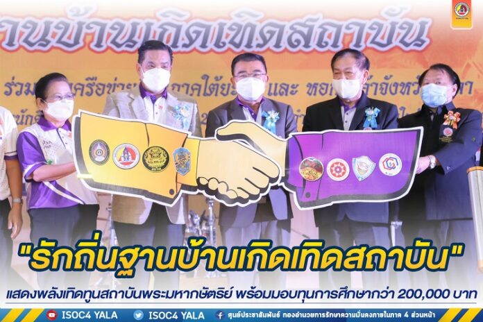ภายในงานมีการแสดงของภาคีเครือข่ายทุกองค์กร ในการแสดงพลังรักชาติเทิดทูนสถาบันพระมหากษัตริย์ และมีการมอบทุนการศึกษา ซึ่งเป็นทุนที่ได้รับการสนับสนุนจากศูนย์อำนวยการบริหารจังหวัดชายแดนภาคใต้ / กองอำนวยการรักษาความมั่นคงภายในภาค 4 ส่วนหน้า โดยมี พลตรี ธนัช ฉิมพาลี ผู้บังคับหน่วยเฉพาะกิจยะลา เป็นผู้แทน พลโท เกรียงไกร ศรีรักษ์ แม่ทัพภาคที่ 4 มอบทุนสนับสนุนในครั้งนี้ รวมถึงหน่วยงานที่เกี่ยวข้องและผู้มีจิตศรัทธาร่วมกันร่วมกันสนับสนุนทุน เป็นเงินจำนวน 200,000 บาท แบ่งเป็นทุนละ 1,000 บาท รวม 230 ทุน เพื่อมอบให้กับนักเรียนและนักศึกษาจาก 9 โรงเรียน ในจังหวัดยะลา เพื่อสนับสนุนการศึกษาให้กับเยาวชนในพื้นที่ต่อไป