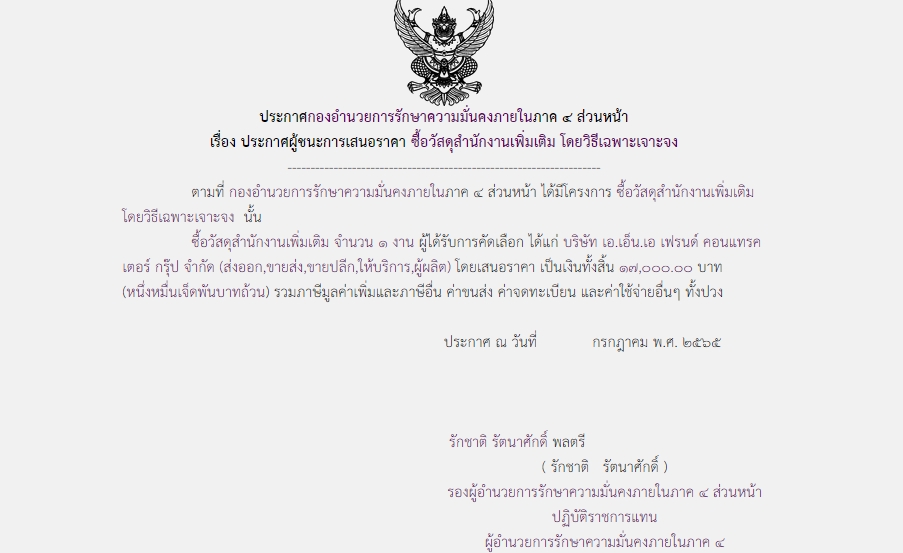 ประกาศผู้ชนะการเสนอราคา ซื้อวัสดุสำนักงานเพิ่มเติม โดยวิธีเฉพาะเจาะจง ( 17,000.00 บาท )