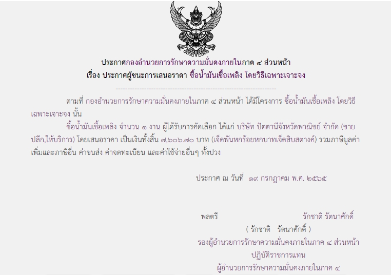 จัดซื้อ จัดจ้างประกาศผู้ชนะการเสนอราคา ประกาศผู้ชนะการเสนอราคา ซื้อน้ำมันเชื้อเพลิง โดยวิธีเฉพาะเจาะจง ( 7,606.70 บาท ) August 7, 2022 391 Share Facebook Twitter Google+ Telegram LINE