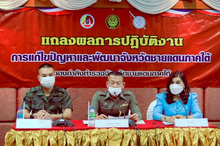 วันนี้ (10 สิงหาคม 2565) ณ กองกำลังตำรวจจังหวัดชายแดนภาคใต้ อำเภอเมือง จังหวัดยะลา พันเอก เกียรติศักดิ์ ณีวงษ์ โฆษกกองอำนวยการรักษาความมั่นคงภายในภาค 4 ส่วนหน้า พร้อมด้วย พันตำรวจเอก อนุพงษ์ ทัศนา ผู้ช่วยโฆษกกองกำลังตำรวจจังหวัดชายแดนภาคใต้ และ นางสุนิสา รามแก้ว ผู้ช่วยเลขาธิการศูนย์อำนวยการบริหารจังหวัดชายแดนภาคใต้ (กรมประชาสัมพันธ์) ร่วมแถลงข่าวชี้แจงการปฏิบัติงานในห้วงเดือนกรกฎาคม 2565