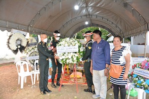 โดย ผู้บัญชาการมณฑลทหารบกที่ 43 / รองผู้อำนวยการรักษาความมั่นคงภายในภาค 4 ส่วนหน้า ได้วางหรีดเคารพศพในนาม พลโท เกรียงไกร ศรีรักษ์ แม่ทัพภาคที่ 4 / ผู้อำนวยการรักษาความมั่นคงภายในภาค 4 และคุณคนึงนิตย์ ศรีรักษ์ ประธานสมาคมแม่บ้านทหารบก สาขากองทัพภาคที่ 4 พร้อมมอบเงินช่วยเหลือเบื้องต้น ให้กับครอบครัว พร้อมทั้งเยี่ยมปลอบขวัญและให้กำลังใจแก่ญาติผู้เสียชีวิตจากเหตุการณ์ดังกล่าว โดยมี ผู้บังคับกองพันทหารราบที่ 4 กรมทหารราบที่ 15 และกำลังพลนายทหาร นายสิบ จากมณฑลทหารบกที่ 43, กองพันทหารราบที่ 4 กรมทหารราบที่ 15 และหน่วยเฉพาะกิจกรมทหารพรานที่ 49 ครอบครัว ญาติ และประชาชนในพื้นที่ ร่วมพิธีเพื่อไว้อาลัยและให้กำลังใจครอบครัวผู้เสียชีวิตด้วย พร้อมกันนั้น พลตรี รักชาติ รัตนาศักดิ์ ได้กล่าวแสดงความเสียใจและให้กำลังใจแก่มารดาและครอบครัวของผู้เสียชีวิต