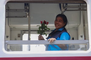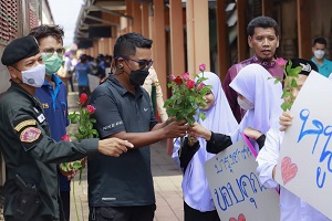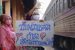 นางสาวรอกีเยาะ สาเมาะ ชาวนราธิวาส เล่าให้ฟังว่า ตนเองทราบข่าวว่าวันนี้จะมีการจัดกิจกรรมร่วมส่งกำลังใจให้เจ้าหน้าที่ ตนจึงได้เดินทางด้วยรถไฟจากจังหวัดนราธิวาสตั้งแต่เช้า เพื่อมาร่วมส่งกำลังใจให้กับเจ้าหน้าที่ในวันนี้ เพราะตนคิดว่ารถไฟมีความสำคัญกับคนในพื้นที่มาก และอยากขอบคุณเจ้าหน้าที่ทุกคนที่ดูแลความปลอดภัยที่พี่น้องประชาชนตลอดมา
