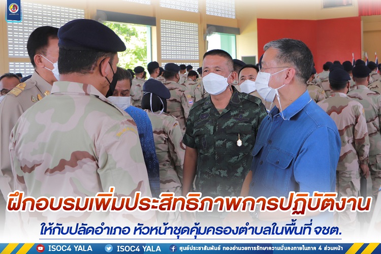 วันนี้ (15 สิงหาคม 2565 ) เวลา 10.00 น. ณ ศูนย์ฝึกอบรมกองกำลังประจำถิ่นท่าสาป อำเภอเมือง จังหวัดยะลา พลตรี ปราโมทย์ พรหมอินทร์ รองแม่ทัพน้อยที่ 4 / รองผู้อำนวยการรักษาความมั่นคงภายในภาค 4 ส่วนหน้า เข้าร่วมพิธีเปิดโครงการฝึกอบรมเพิ่มประสิทธิภาพการปฎิบัติงานให้กับปลัดอำเภอหัวหน้าชุดคุ้มครองตำบลในพื้นที่จังหวัดชายแดนภาคใต้ โดยมี นายธนาคม จงจิระ อธิบดีกรมการปกครอง เป็นประธานในพิธีเปิดโครงการฯ พร้อมด้วย นายภิรมย์ นิลทยา ผู้ว่าราชการจังหวัดยะลา, รองเลขาธิการศูนย์อำนวยการบริหารจังหวัดชายแดนภาคใต้, รองผู้ว่าราชการจังหวัดยะลา ตลอดจนนายอำเภอในพื้นที่ และปลัดอําเภอหัวหน้าชุดคุ้มครองตําบล ในพื้นที่ 3 จังหวัดชายแดนภาคใต้ และ 4 อําเภอ ของจังหวัดสงขลา จํานวน 164 คน เข้ารับการอบรมระหว่างวันที่ 15 – 17 สิงหาคม 2565