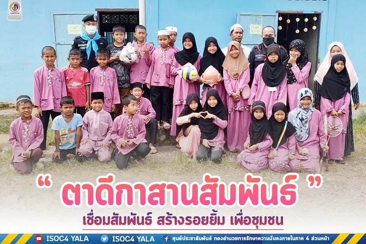 หน่วยเฉพาะกิจกรมทหารพรานที่ 47 จัดกำลังพล เข้าเยี่ยมเยียน พบปะพัฒนาสัมพันธ์กับบุคลากรทางการศึกษา และเยาวชนในศูนย์การศึกษาอิสลามประจำมัสยิด (ตาดีกา) ในพื้นที่ อำเภอยะหา, อำเภอกาบัง และ อำเภอกรงปินัง จังหวัดยะลา เพื่อสร้างความเข้าใจ ปรับทุกข์ ผูกมิตร เสริมสร้างความสัมพันธ์อันดีระหว่างเจ้าหน้าที่รัฐกับคณะครูและนักเรียน