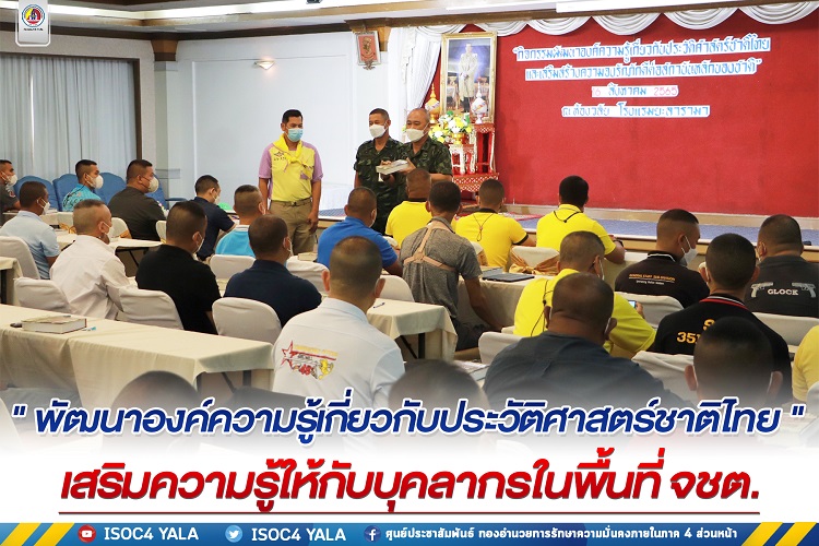 สำหรับกิจกรรมดังกล่าวจัดโดย สำนักมวลชนและกิจการพิเศษกองอำนวยการรักษาความมั่นคงภายในภาค 4 ส่วนหน้าจัดขึ้น เพื่อเสริมสร้างความรู้เกี่ยวกับประวัติศาสตร์ชาติไทยให้กับบุคลากรในพื้นที่จังหวัดชายแดนภาคใต้ ทั้ง ยะลา นราธิวาส ปสงขลา และจังหวัดปัตตานี รวม จำนวน 600 นาย ซึ่งกำหนดจัดขึ้นในระหว่างวันที่ 16-19 สิงหาคม 2565 ภายในงานมีการบรรยายเรื่อง สถาบันพระมหากษัตริย์กับประเทศไทย, สถาบันพระมหากษัตริย์กับสังคมไทย/ ความเป็นมาและแนวทางปฏิบัติงานจิตอาสา/ โดยวิทยากรผู้ทรงคุณวุฒิทางประวัติศาสตร์