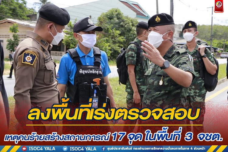 ภายหลังจากทราบเหตุการณ์ พลโท เกรียงไกร ศรีรักษ์ แม่ทัพภาคที่ 4 ได้สั่งการให้หน่วยดำเนินการตามมาตรการขั้นตอนที่ได้มีการกำหนดไว้ คือการเข้าควบคุมสถานการณ์ และพื้นที่เกิดเหตุในทุกจุดควบคู่ไปกับการประสานกับสถานีดับเพลิงทุกพื้นที่ในการช่วยกันดับเพลิง ซึ่งสามารถควบคุมสถานการณ์และพื้นที่เกิดเหตุได้ตั้งแต่เมื่อคืนนี้ ล่าสุดทางเจ้าหน้าที่ได้เข้าไปทำการนิรภัยพื้นที่ให้มีความปลอดภัย โดยชุด EOD ได้เข้าไปทำการตรวจสอบพื้นที่เกิดเหตุอย่างละเอียดมีการทำพื้นที่ให้ปลอดภัยโดยทางชุดพิสูจน์หลักฐานได้เข้าไปเก็บรวบรวมวัตถุพยานหลักฐานเพื่อที่จะดำเนินการต่อกลุ่มคนร้ายต่อไป