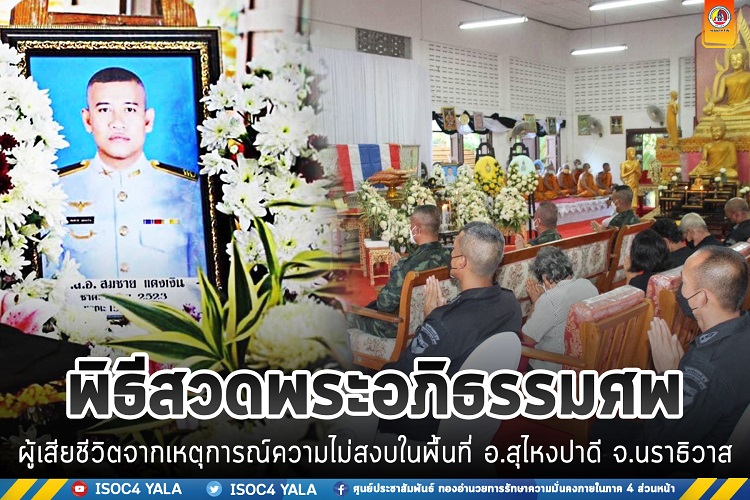 โดยเมื่อวานนี้เป็นการสวดพระอภิธรรมศพวันที่ 3 และมีกำหนดพิธีการพระราชทานเพลิงศพ จ่าสิบเอก สมชาย แดงเงิน (จ่าแคน) ในวันอาทิตย์ที่ 21 สิงหาคม 2565 เวลา 16.00 น. ณ วัดมหันตคาม ชุมชนบ้านใหญ่ หมู่ที่ 3 ตำบลไม้แก่น อำเภอไม้แก่น จังหวัดปัตตานี ซึ่งพลเอก ณรงค์พันธ์ จิตต์แก้วแท้ ผู้บัญชาการทหารบก จะลงพื้นที่มาเป็นประธานในพิธี ดังกล่าว ทางด้าน ผู้บังคับหน่วยเฉพาะกิจปัตตานี ได้พบปะให้กำลังใจครอบครัวผู้เสียชีวิต อีกทั้งฝากความห่วงใย และพร้อมที่จะให้การช่วยเหลือหากมีการร้องขอ และขอความร่วมมือประชาชนในพื้นที่ หากพบเห็นสิ่งผิดปกติ หรือบุคคลต้องสงสัยเข้ามาเคลื่อนไหวในพื้นที่ สามารถแจ้งได้ที่เบอร์สายตรงแม่ทัพภาคที่ 4 โทร 061-1732999 และเบอร์สายด่วน 1341 หรือหน่วยเฉพาะกิจในพื้นที่ได้ตลอด 24 ชั่วโมง