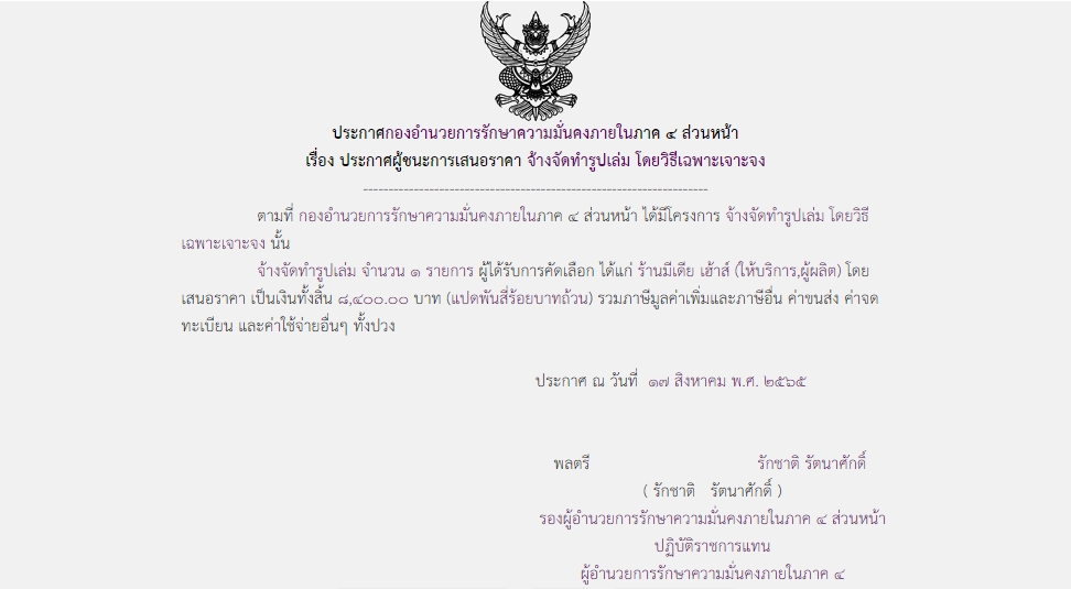 จัดซื้อ จัดจ้างประกาศผู้ชนะการเสนอราคา ประกาศผู้ชนะการเสนอราคา จ้างจัดทำรูปเล่ม โดยวิธีเฉพาะเจาะจง August 19, 2022 391 Share Facebook Twitter Google+ Telegram LINE