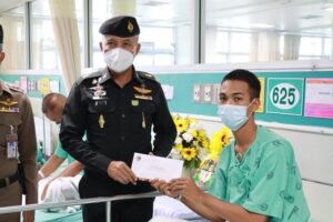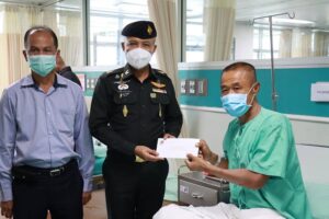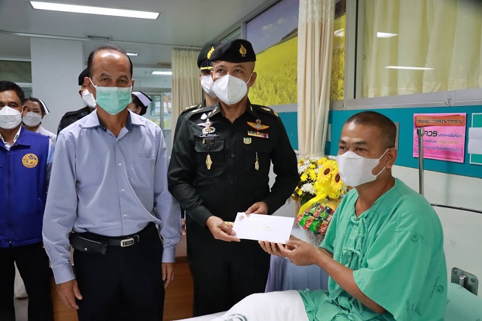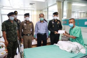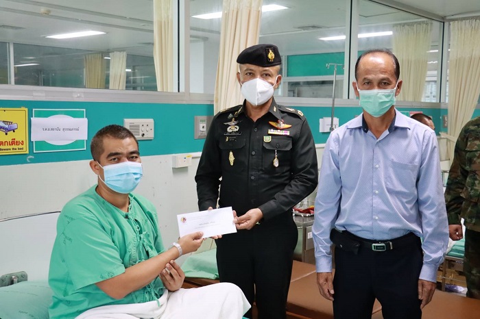 โอกาสนี้ รองแม่ทัพภาคที่ 4 ได้สอบถามอาการและพูดคุย พร้อมนำความห่วงใยจากแม่ทัพภาคที่ 4 มาให้กำลังพล (ผู้ได้รับบาดเจ็บ) และมอบกระเช้า พร้อมเงินช่วยเหลือเป็นขวัญและกำลังใจ พร้อมทั้งกล่าวขอบคุณในการทำงานอย่างเต็มความสามารถของเจ้าหน้าที่ในการปฎิบัติหน้าที่อย่างกล้าหาญ เด็ดเดี่ยวเป็นกำลังสำคัญในการทำพื้นที่เพื่อให้ประชาชนมีความปลอดภัย และขอให้มีกำลังใจที่ดีในการทำหน้าที่เพื่อสร้างความมั่นคงในพื้นที่ต่อไป