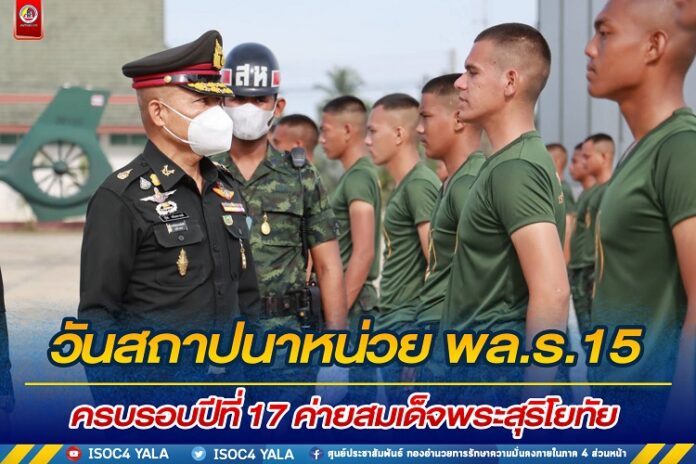 โดย พลตรี อุทิศ อนันตนานนท์ รองแม่ทัพภาคที่ 4 / รองผู้อำนวยการรักษาความมั่นคงภายในภาค 4 ส่วนหน้า ได้เข้าสักการะสิ่งศักดิ์สิทธิ์ ภายในค่ายสมเด็จพระสุริโยทัย เพื่อเป็นสิริมงคลแก่กำลังพลภายในหน่วย จากนั้น พลตรี อุทิศ อนันตนานนท์ รองแม่ทัพภาคที่ 4 / รองผู้อำนวยการรักษาความมั่นคงภายในภาค 4 ส่วนหน้า ประธานในพิธี ร่วมประกอบพิธีทางศาสนา เนื่องในวันสถาปนากองพลทหารราบที่ 15 ครบรอบปีที่ 17 เพื่อรำลึกและอุทิศบุญกุศลแก่กำลังพลที่เสียชีวิตจากการปฏิบัติหน้าที่ ทั้งในภาคสนามและที่ตั้งปกติ สร้างขวัญกำลังใจแก่กำลังพลภายในหน่วย ก่อนมอบทุนการศึกษาให้แก่บุตรหลานกำลังพล ทั้งนี้ รองแม่ทัพภาคที่ 4 ได้เยี่ยมชมนิทรรศการผลปฏิบัติงานของกองพลทหารราบที่ 15 และหน่วยในสังกัด, เยี่ยมชมศูนย์การเรียนรู้เกษตรทฤษฎีใหม่ กองพลทหาราบที่ 15, และห้องออกกำลังกาย (fitness) กองพลทหาราบที่ 15