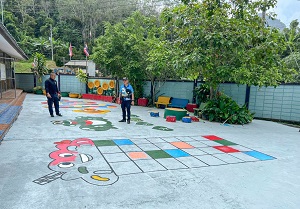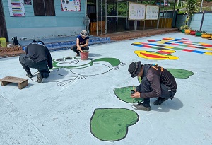 ชุดปฏิบัติการเสริมสร้างความเข้าใจ กองร้อยทหารพรานที่ 3005 หน่วยเฉพาะกิจกรมทหารพรานที่ 30 ทำการวาดภาพศิลปะ และทาสีลานเรียนรู้ เพื่อใช้เป็นสื่อการเรียนการสอนให้กับนักเรียน เพื่อเพิ่มทักษะในการเรียนรู้ของเด็กนักเรียน ณ โรงเรียนนิคมสร้างตนเองพัฒนาภาคใต้ 11 หมู่ที่ 5 บ้านตาเอียดตำบลตลิ่งชัน อำเภอบันนังสตา จังหวัดยะลา เพื่อสร้างบรรยากาศโรงเรียนให้สวยงาม