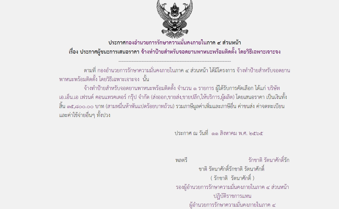จัดซื้อ จัดจ้างประกาศผู้ชนะการเสนอราคา ประกาศผู้ชนะการเสนอราคา จ้างทำป้ายสำหรับจอดยานพาหนะพร้อมติดตั้ง โดยวิธีเฉพาะเจาะจง August 22, 2022 619 Share Facebook Twitter Google+ Telegram LINE