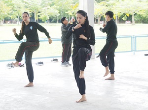 โดยได้ทำการสอนทั้งภาคทฤษฎีและปฏิบัติ ประกอบด้วย ศิลปะการป้องกันตัวและแม่ไม้มวยไทย การไหว้ครู ท่าร่ายรำมวยไทย ภายใต้การส่งเสริมศิลปะการต่อสู้มวยไทย สืบสานวัฒนธรรมที่มีมาอย่างยาวนาน
