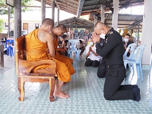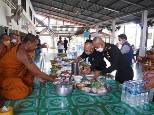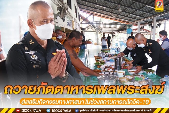 เมื่อวันที่ 23 สิงหาคม 2565 เวลา 10.30 น. ณ วัดรัตนานุภาพ บ้านโคกโก ตำบลโต๊ะเด็ง อำเภอสุไหงปาดี จังหวัดนราธิวาส พลตรี เฉลิมพร ขำเขียว ผู้บัญชาการกองพลทหารราบที่ 15 / ผู้อำนวยการศูนย์ประสานงานโครงการอันเนื่องมาจากพระราชดำริ เดินทางลงพื้นที่กราบนมัสการ พร้อมทั้งถวายภัตตาหารเพลพระสงฆ์ที่อุปสมบทในโครงการอุปสมบทหมู่เฉลิมพระเกียรติ สมเด็จพระนางเจ้าสิริกิติ์ พระบรมราชินีนาถ พระบรมราชชนนีพันปีหลวง ประจำปี 2565 และขับเคลื่อนโครงการเสริมสร้างชุมชนที่เข้มแข็ง โดยมี พันโท กฤษกร คงสมโอษฐ์ รองผู้บังคับหน่วยเฉพาะกิจกรมทหารพรานที่ 48 ผู้นำท้องที่ และผู้ที่เกี่ยวข้องให้การต้อนรับ โดยได้สนับสนุนภัตตาหารแด่พระสงฆ์ที่ไม่สามารถออกบิณฑบาตได้ พร้อมทั้งสอบถามความเป็นอยู่ของพระสงฆ์ และการปฏิบัติศาสนกิจในช่วงสถานการณ์แพร่ระบาดของเชื้อไวรัสโควิด19 รวมถึงสถานการณ์ความไม่สงบในพื้นที่ เพื่อรับทราบปัญหาและกำหนดแนวทางในการบรรเทาความเดือดร้อนของพระสงฆ์ที่อยู่ในพื้นที่ ไม่ละทิ้งวัดและสามารถปฏิบัติศาสนกิจได้