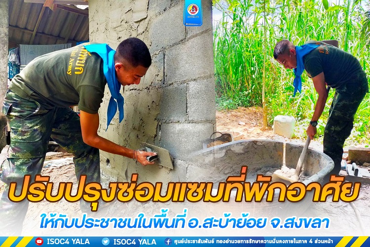 เจ้าหน้าที่ทหารจากหน่วยเฉพาะกิจสงขลาที่ 40 ดำเนินการเร่งปรับปรุงซ่อมแซมที่พักอาศัย ณ บ้านเลขที่ 13 หมู่ที่ 2 บ้านปลักบ่อ ตำบลสะบ้าย้อย อำเภอสะบ้าย้อย จังหวัดสงขลา ให้กับประชาชนที่ได้ผ่านการพิจารณาจากสภาประชาธิปไตยตำบลสะบ้าย้อย ห้วงปีงบประมาณ 2565 ในการช่วยเหลือประชาชนที่มีจิตอาสาเสียสละเพื่อสังคมและมีความยากลำบาก เหมาะสมที่จะได้รับการช่วยเหลือ สร้างขวัญกำลังใจ เพิ่มพูนความสุข และยกระดับคุณภาพชีวิตแก่ประชาชน