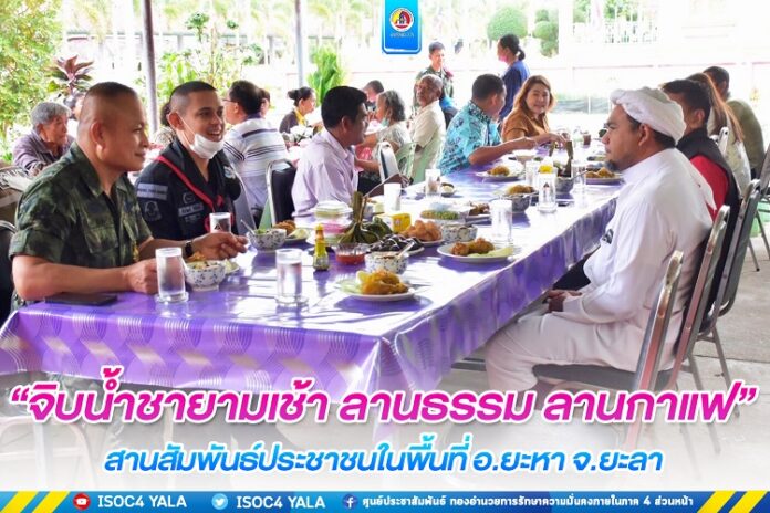 เมื่อวันที่ 23 สิงหาคม 2565 เวลา 07.00 น. ที่วัดยะหาประชาราม อำเภอยะหา จังหวัดยะลา พันโท จิรวัฒน์ พิทักษ์ รองผู้บังคับหน่วยเฉพาะกิจกรมทหารพรานที่ 47 พร้อมด้วย กำลังพลหน่วยเฉพาะกิจกรมทหารพรานที่ 47 ร่วมกับ นายอำเภอยะหา, ผู้กำกับการตำรวจภูธรยะหา, ส่วนราชการฯ และพี่น้องประชาชนในพื้นที่ อำเภอยะหา จังหวัดยะลา ให้การต้อนรับ พลตรี ธนัช ฉิมพาลี ผู้บังคับหน่วยเฉพาะกิจยะลา ในโอกาสเดินทางมาร่วมกิจกรรม “จิบน้ำชายามเช้า ลานธรรม ลานกาแฟ ครั้งที่ 110” เพื่อพบปะพูดคุยพัฒนาสัมพันธ์ แลกเปลี่ยนข้อคิดเห็น ข้อเสนอแนะต่าง ๆ รวมทั้งแจ้งเตือนข่าวสารความเคลื่อนไหวต่าง ๆ ในพื้นที่ พร้อมทั้งได้ประชาสัมพันธ์เกี่ยวกับข้อมูลข่าวสารต่าง ๆ ภายในชุมชน และองค์กร โดยหน่วยเฉพาะกิจกรมทหารพรานที่ 47 ร่วมกับสถานีวิทยุทักษิณสัมพันธ์ 302 เป็นเจ้าภาพในการจัดกิจกรรม
