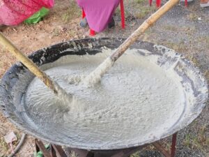 สำหรับความเป็นมาของการกวนอาซูรอ สืบเนื่องจากได้เกิดน้ำท่วมใหญ่ในสมัยนบีนุฮ ทำให้เกิดความเสียหายแก่ทรัพย์สิน ไร่นาของประชาชน และสาวกของนบีนุฮ คนทั่วไปต้องอดอาหาร นบีนุฮ จึงประกาศให้ผู้ที่มีสิ่งของเหลือพอจะรับประทานได้ให้เอามากองรวมกัน และให้เอาของเหล่านั้นมากวนเข้าด้วยกันเพื่อให้ทุกคนได้รับประทานอาหารกันโดยถ้วนหน้า คำว่า “อาซูรอ” เป็นภาษาอาหรับ แปลว่า การผสม การรวมกัน การกวนอาซูรอ จะใช้คนในหมู่บ้านมาช่วยกันคนละไม้คนละมือ เพื่อความสามัคคี และสร้างความพร้อมเพรียงเป็นน้ำหนึ่งใจเดียวกัน อันมีผลต่อการอยู่ร่วมกันของสังคมอย่างมีความสุข ซึ่งจะเป็นพลังในการพัฒนาท้องถิ่นให้เข้มแข็งยั่งยืนต่อไปในอนาคต และเป็นสังคมพหุวัฒนธรรมในพื้นที่จังหวัดชายแดนภาคใต้ตลอดไป