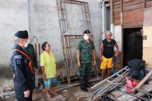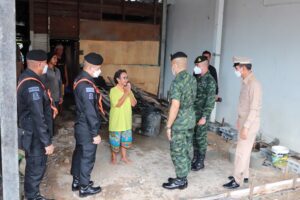 วันนี้ (27 สิงหาคม 2565) เวลา 14.50 น. พลตรี อุทิศ อนันตนานนท์ รองแม่ทัพภาคที่ 4 / รองผู้อำนวยการรักษาความมั่นภายในภาค 4 ส่วนหน้า พร้อมด้วย พันเอก สิทธิชัย บำรุงเขต ผู้บังคับหน่วยเฉพาะกิจกรมทหารพรานที่ 46 ลงพื้นที่เยี่ยมและให้กำลังใจครอบครัว นางน้อย ศุภเวช ซึ่งเป็นเจ้าของบ้าน จากกรณีที่เจ้าหน้าที่ทหารชุดช่างของหน่วยเฉพาะกิจกรมทหารพรานที่ 46 ได้ซ่อมแซมที่พักอาศัยตามโครงการ “หน่วยเฉพาะกิจนรา ซ่อมสร้าง ปันสุข” ณ บ้านเลขที่ 67 หมู่ที่ 2 บ้านยะบะ ต.รือเสาะ อ.รือเสาะ จ.นราธิวาส และได้เกิดเหตุคนร้าย ขว้างระเบิดแสวงเครื่องแบบไปป์บอมบ์ใส่เจ้าหน้าที่ทหารขณะะซ่อมบ้านดังกล่าว เมื่อวันที่ 24 สิงหาคม 2565 เวลา 11.20 น. ที่ผ่านมา เป็นเหตุทำให้เจ้าหน้าที่ได้รับบาดเจ็บ 2 นาย คือ อาสาสมัครทหารพราน เอกพงษ์ คงสวัสดิ์ และ อาสาสมัครทหารพราน อัมซัน สาและ ถูกนำตัวส่งโรงพยาบาลรือเสาะ จังหวัดนราธิวาส