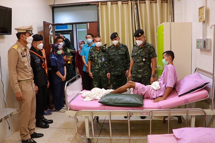จากนั้น พลตรี อุทิศ อนันตนานนท์ รองแม่ทัพภาคที่ 4 และคณะ ได้เดินทางไปยังโรงพยาบาลรือเสาะ อ.รือเสาะ จ.นราธิวาส เพื่อเยี่ยมให้กำลังใจเจ้าหน้าที่หน่วยเฉพาะกิจกรมทหารพรานที่ 46 ที่ได้รับบาดเจ็บดังกล่าว ขณะนี้อาการปลอดภัยแล้ว